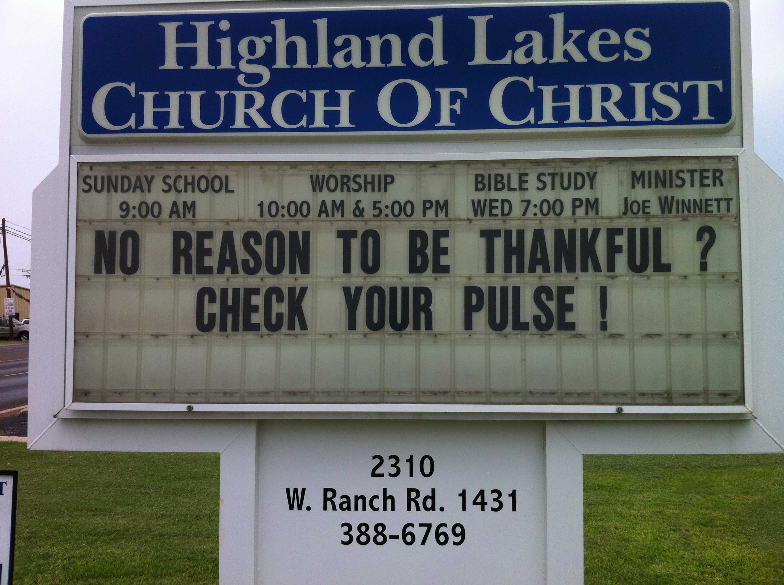 May 26th : in the absence of Joe Winnett, Charles Greenawalt (in the morning) and Ken Darnell (in the evening) will fill the pulpit.